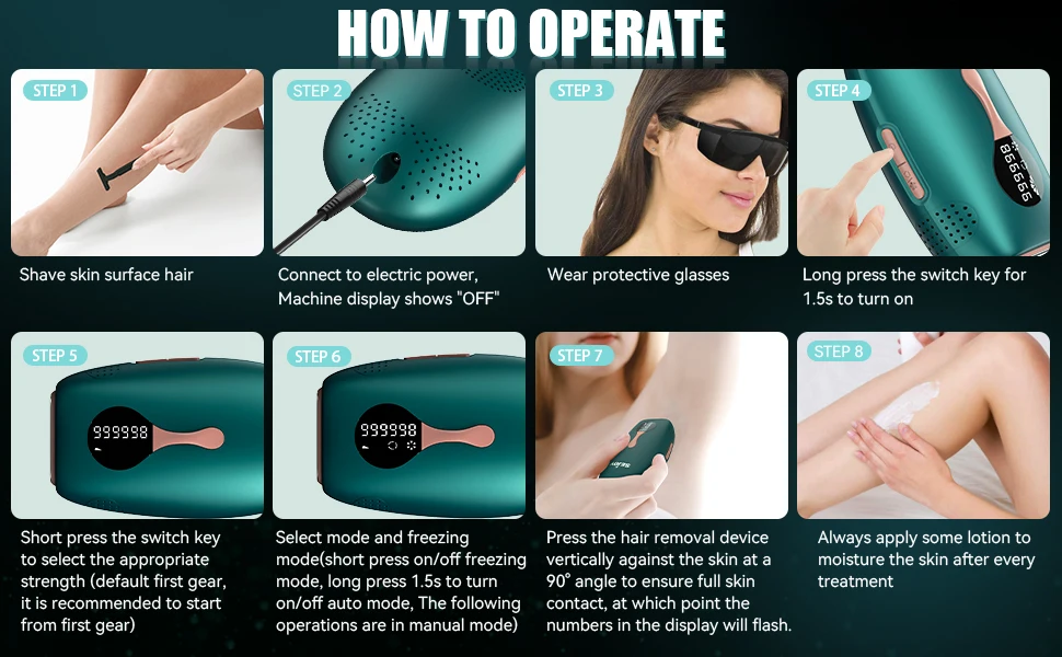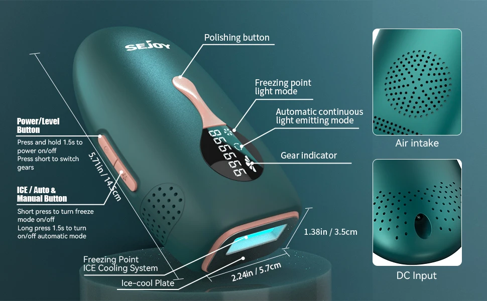 Achieve smooth, hair-free skin effortlessly with this Laser Epilator, designed for safe and effective body hair removal. Suitable for use on various areas of the body, it delivers precise results while being gentle on the skin. Equipped with one or two nozzles, it ensures easy access to both large and delicate areas, giving you professional-level care at home. This versatile epilator operates via mains or rechargeable battery, with a charging time of up to 2 hours. The built-in charging indicator keeps you informed during the process, ensuring convenient and uninterrupted use. Lightweight, efficient, and chemical-free, it provides a comfortable and reliable solution for long-lasting smooth skin.